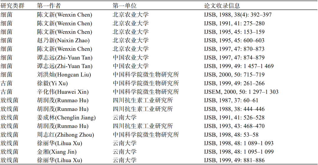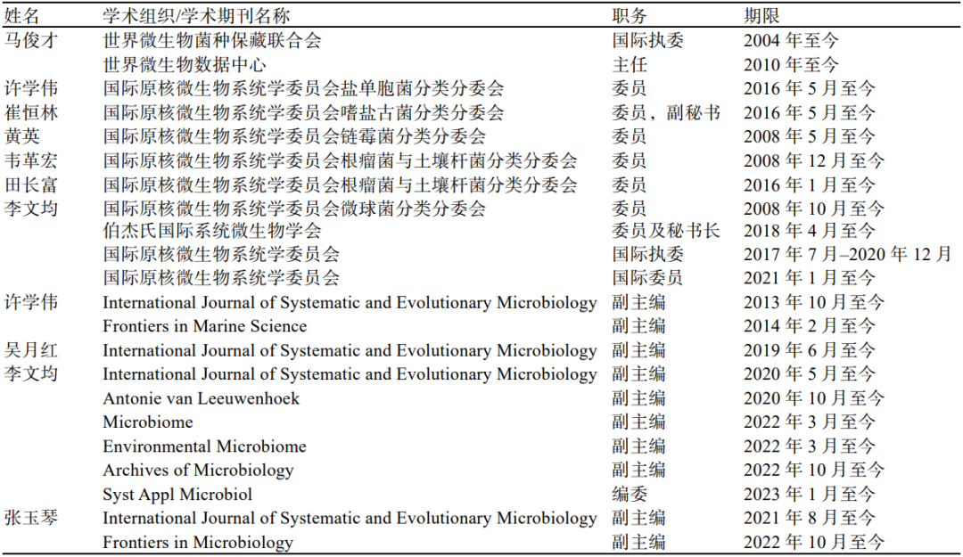 表3 21世纪以来中国微生物分类研究工作者在国际原核微生物分类学相关学术组织及学术期刊任职情况