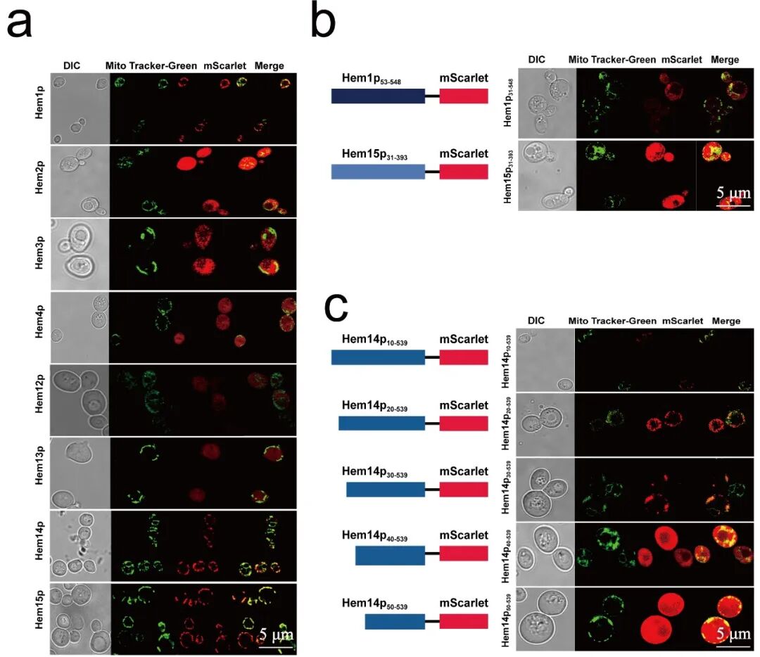附图2 酿酒酵母血红素合成途径中所有酶的亚细胞定位和定位信号肽分析